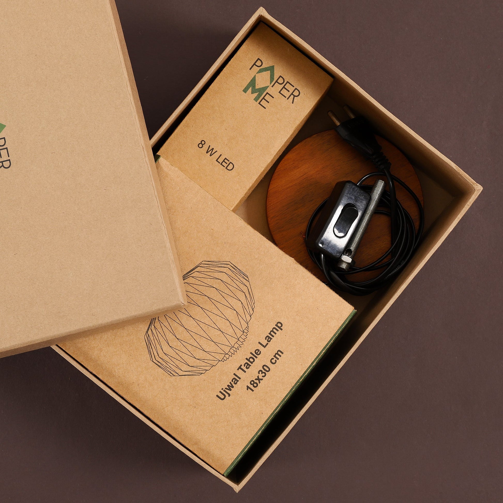 - Contains : Paper Lamp , Bulb , Wooden Stand , Cord With Switch & Brush